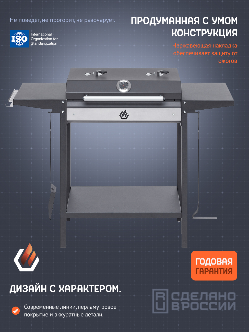 • Окрашен термостойкой краской (до 1200 ℃).Ознакомиться с товаром можно по ссылке: https://www.ozon.ru/product/mangal-gril-premium-gratar-simple-st4-4-57-usilennyy-4mm-dlya-dachi-s-kryshkoy-barbekyu-2141961887/