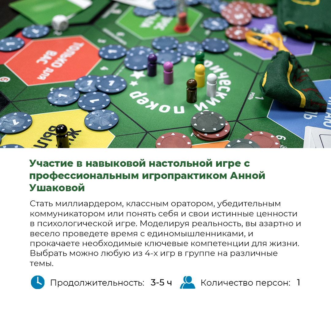 - Участие в навыковой настольной игре с профессиональным игропрактиком Анной Ушаковой → (смотреть видео)