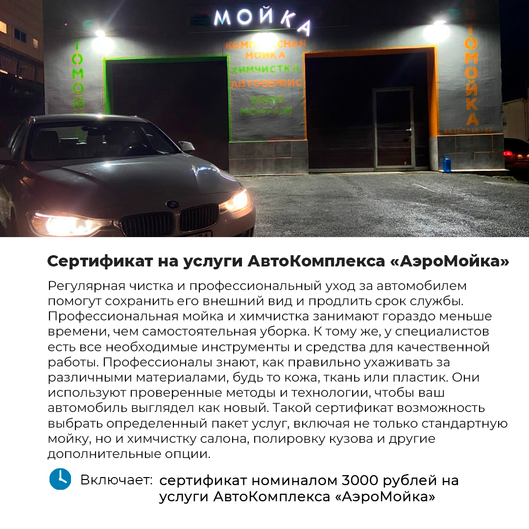 - Сертификат на услуги АвтоКомплекса «АэроМойка»
