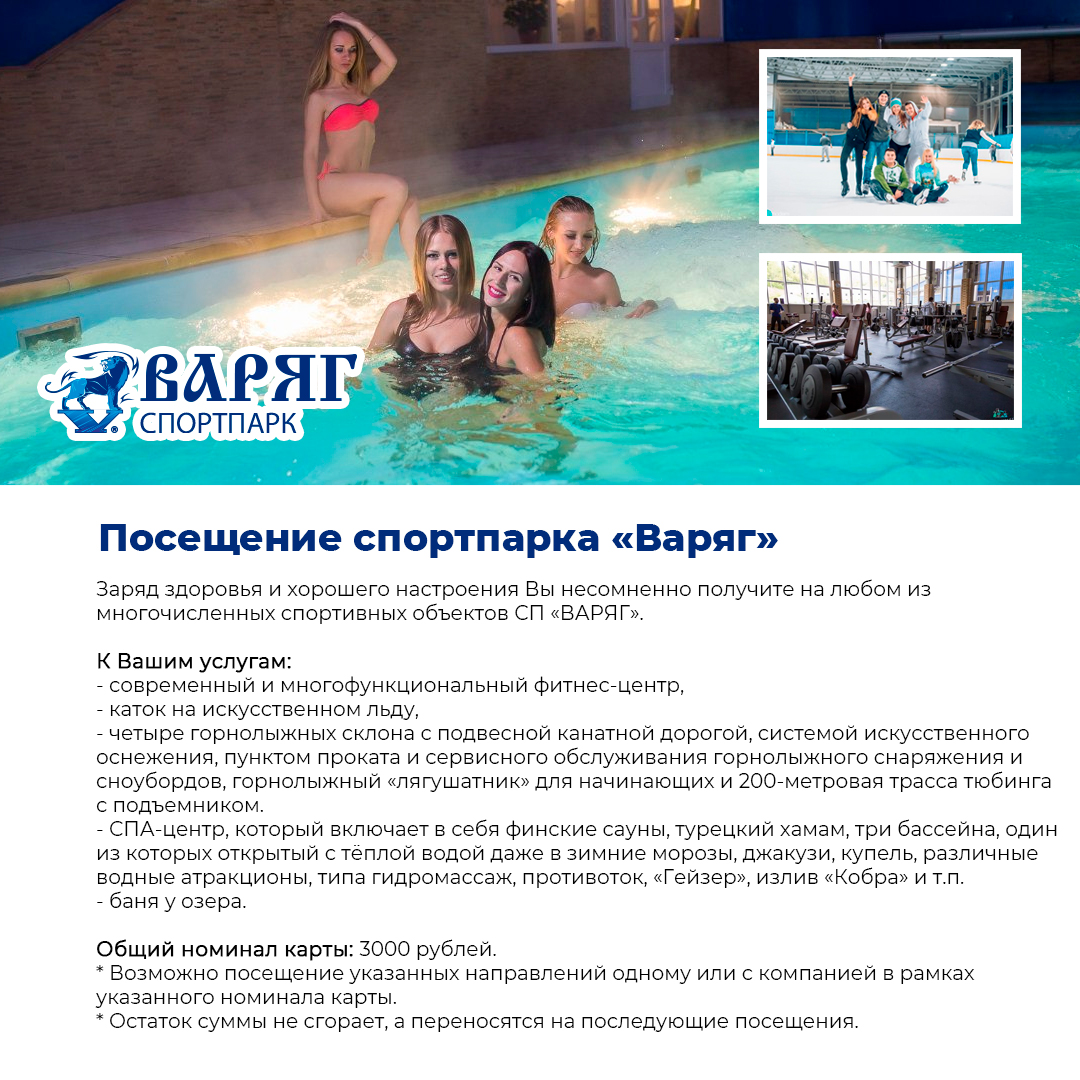 - Сертификат номиналом 3000 рублей на посещение спортпарка «Варяг» → (смотреть видео)