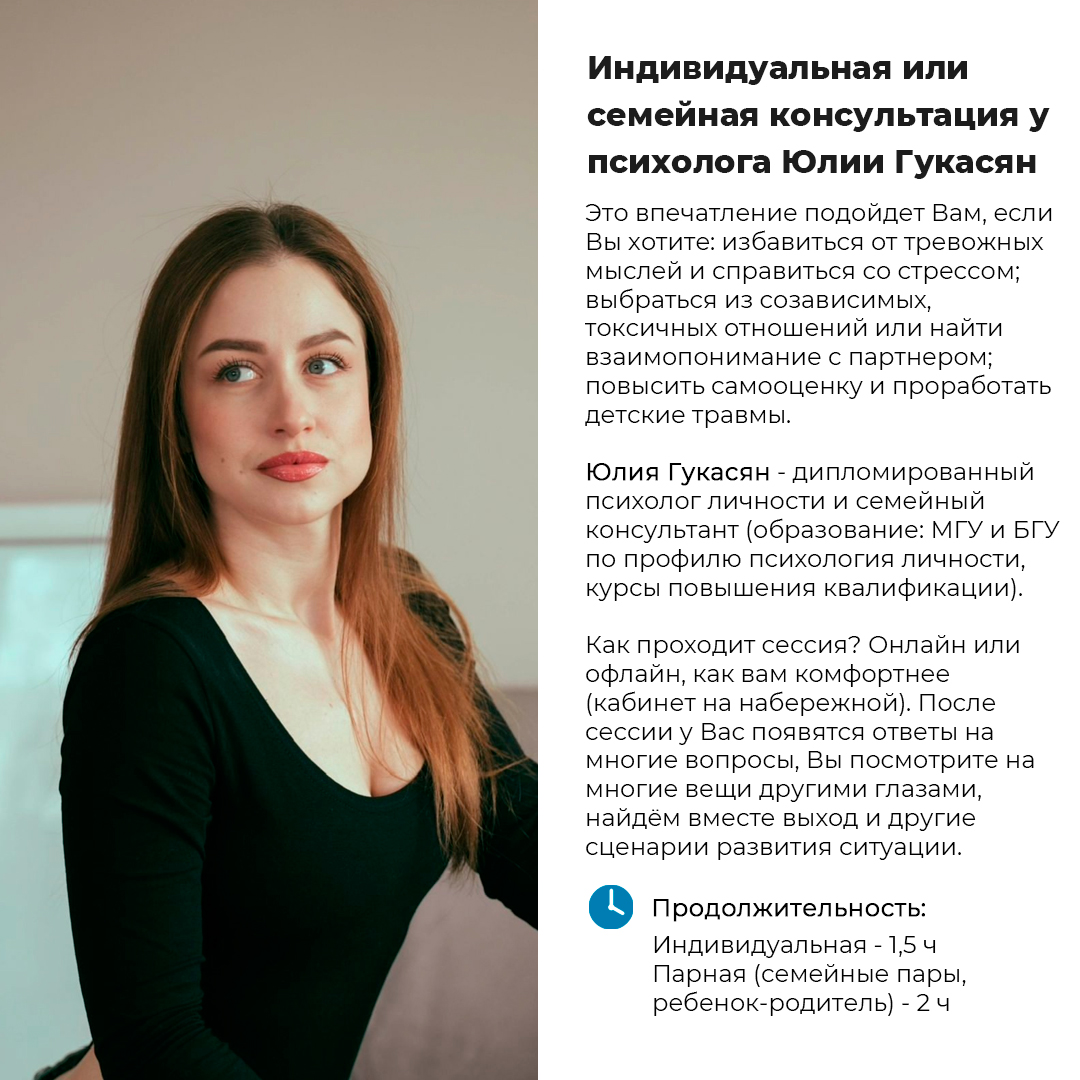 - Индивидуальная или семейная консультация у психолога Юлии Гукасян