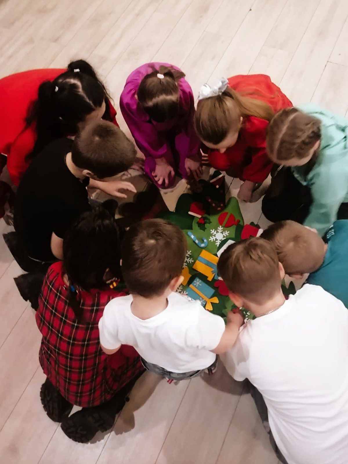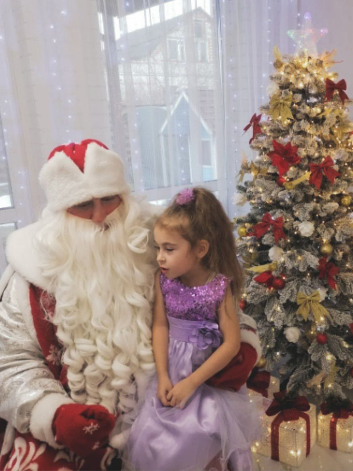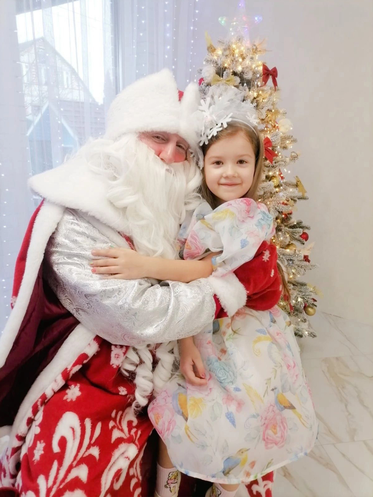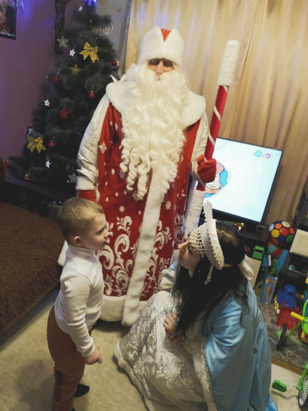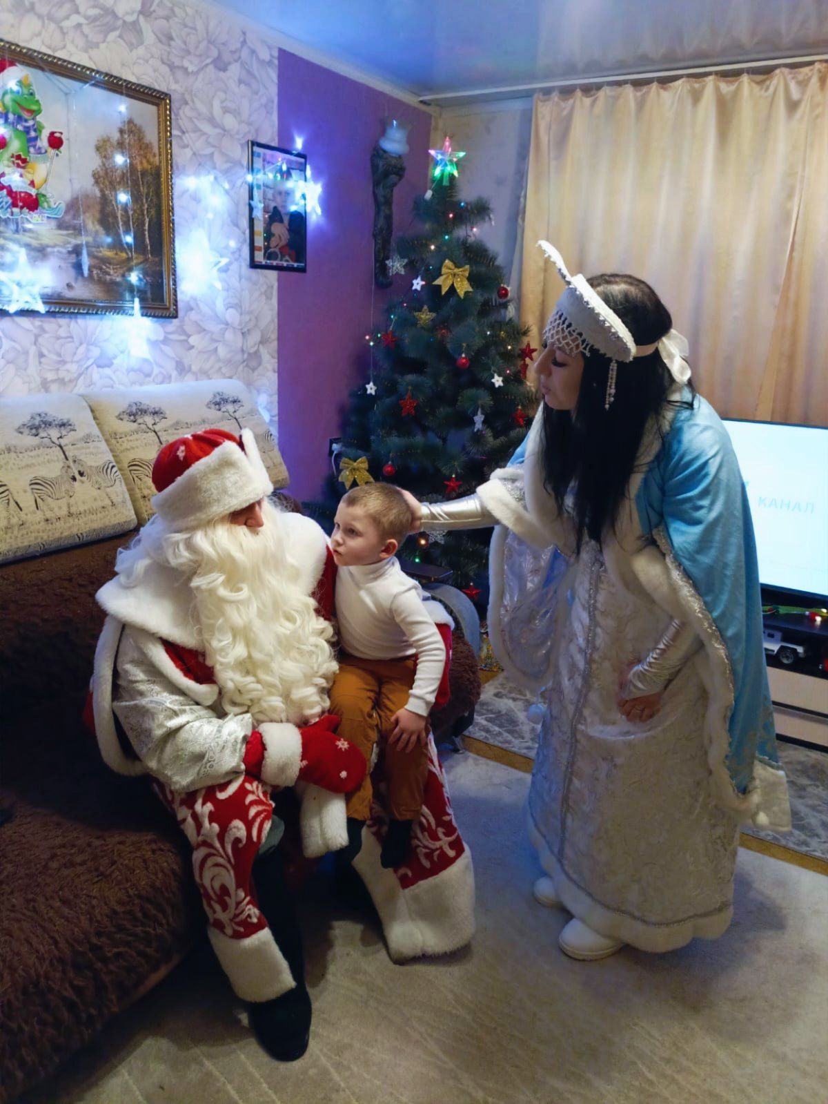 Дед Мороз и снегурочка водит хоровод, играет в 1 игру, слушает стихотворение, вручает подарок