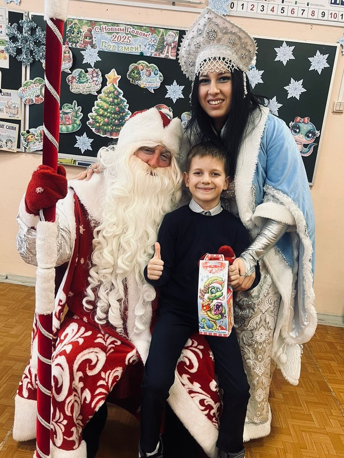 Дед Мороз и снегурочка играют в игры/викторины/розыгрыши/ водят хоровод, мини диско/ вручает подарок после стихотворения