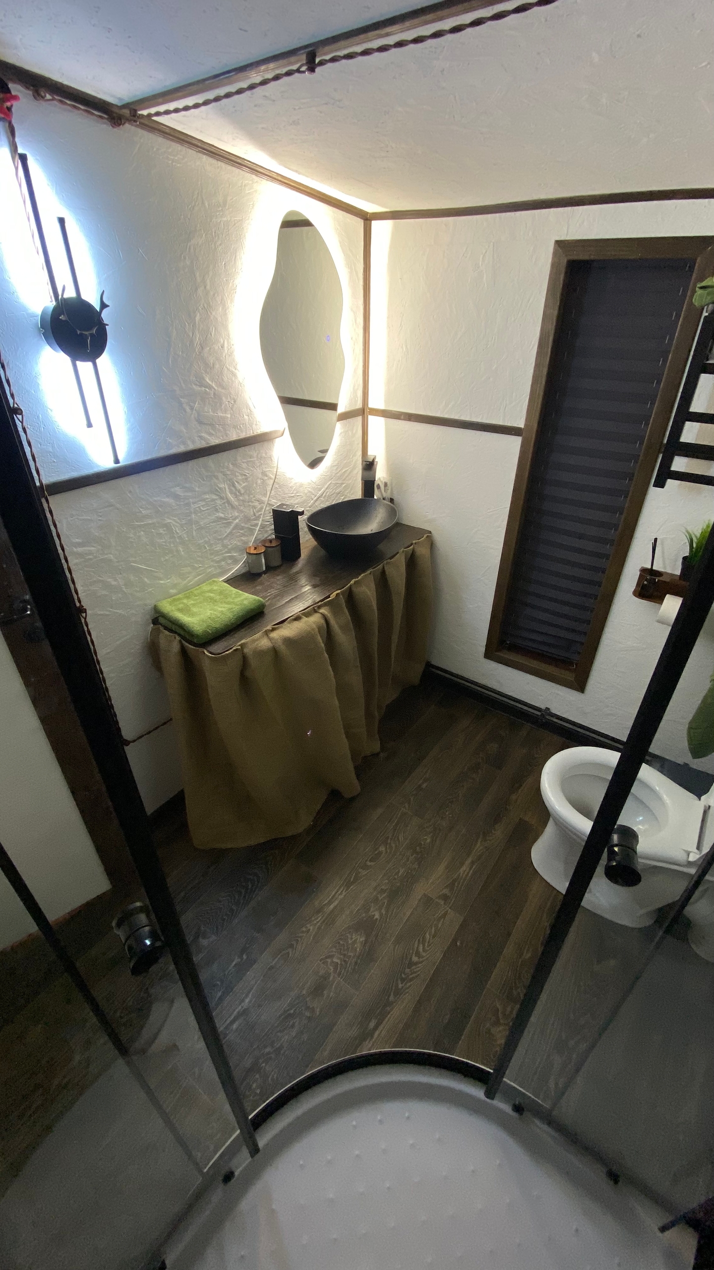 • Душевая зона (фен, зубные принадлежности, гель для душа, шампунь, полотенца).