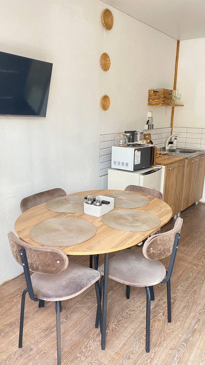 • Кухонная зона (микроволновка, холодильник, плита, посуда, чайник, чай и кофе).
