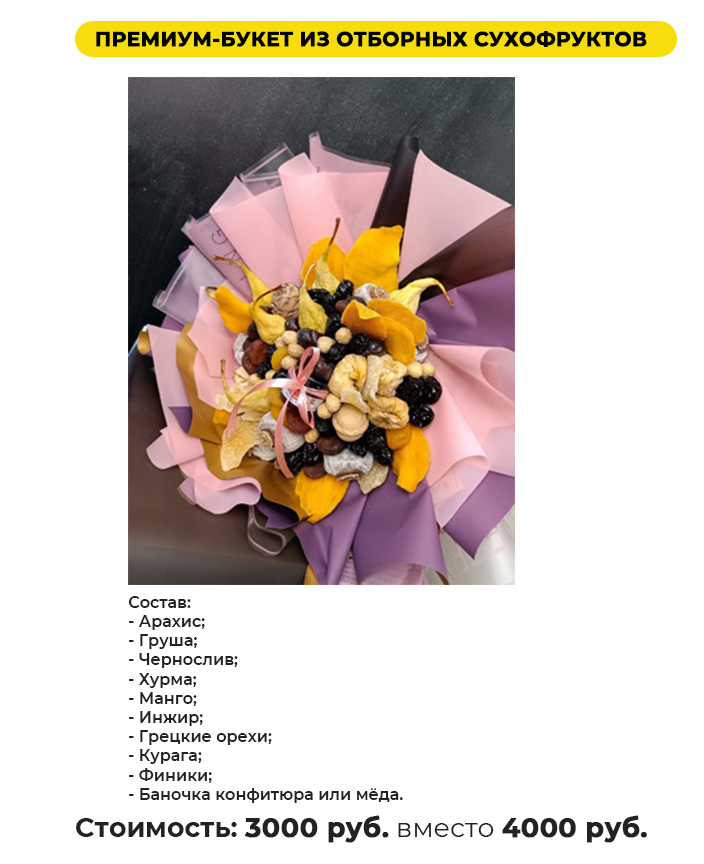 ПРЕМИУМ-БУКЕТ ИЗ ОТБОРНЫХ СУХОФРУКТОВ