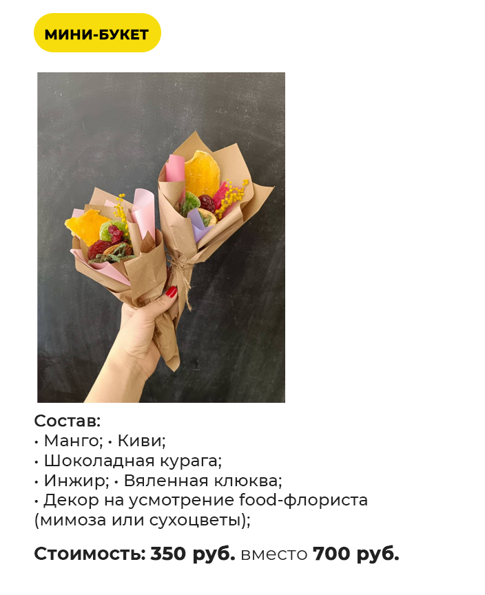 ◦ Декор на усмотрение food- флориста (мимоза или сухоцветы);