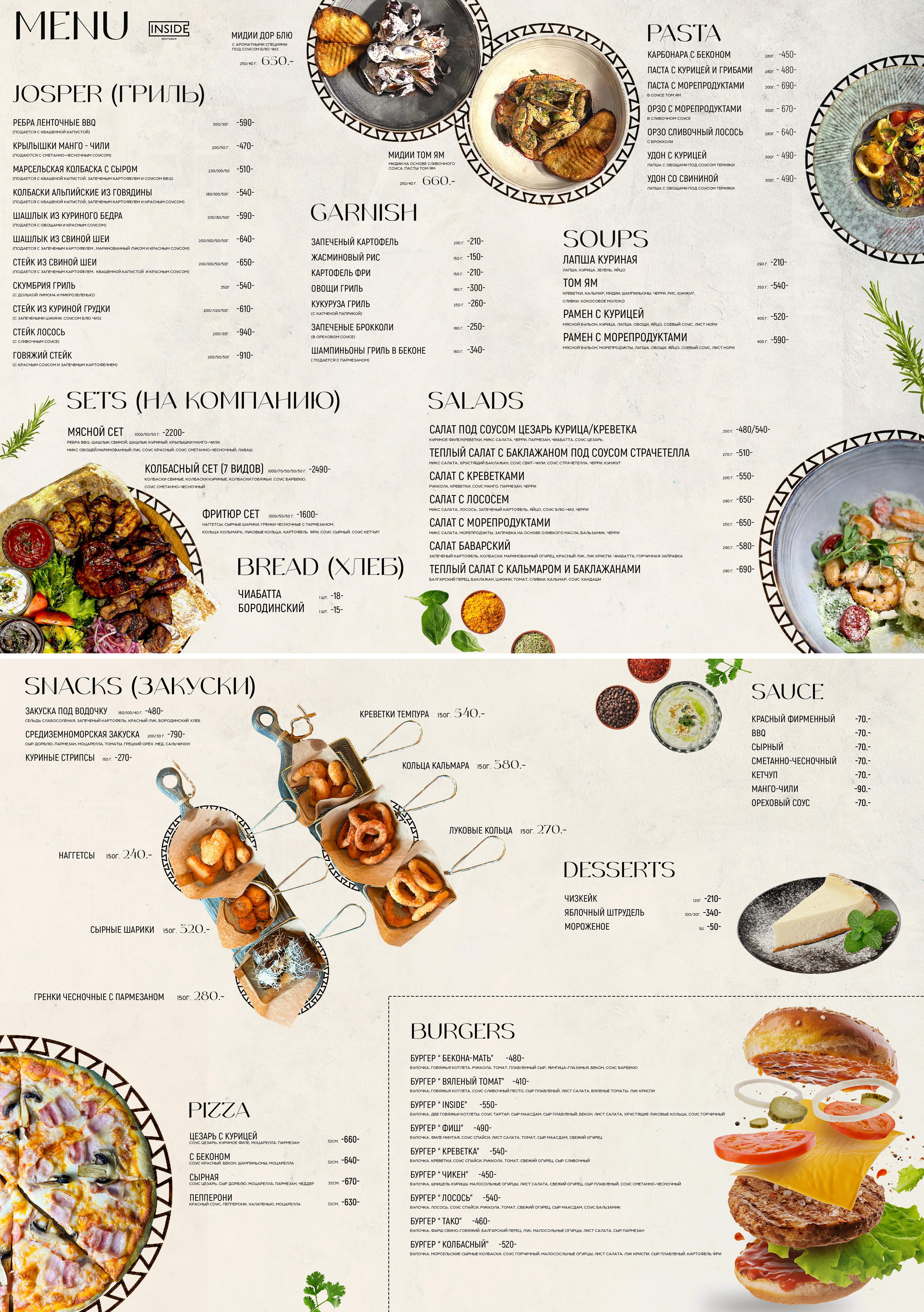 Всё меню в кафе «INSIDE на опушке»: Драники, пасты, пицца, блюда на мангале