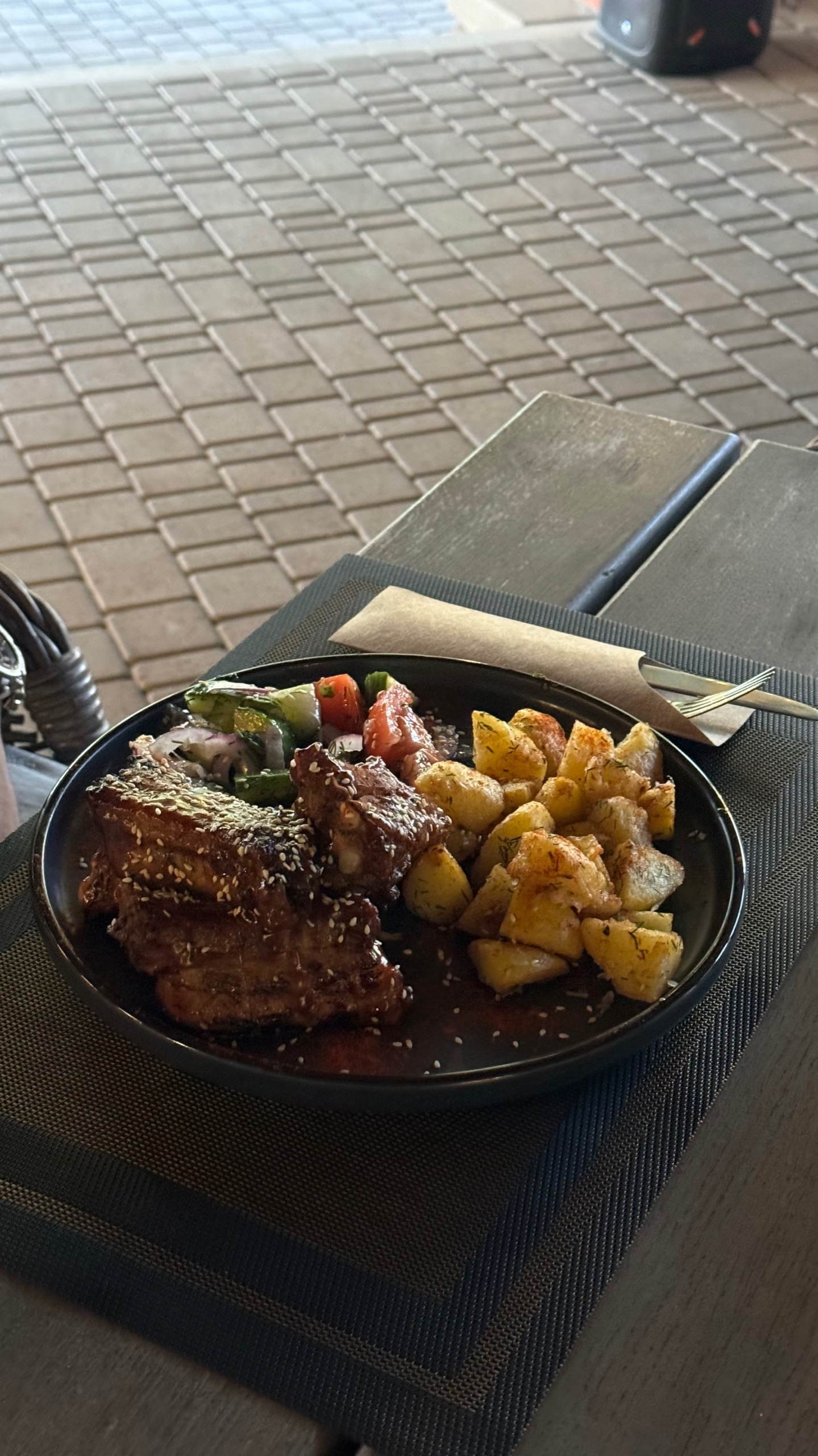• Ребра запеченные с картофелем по-деревенски 300/100/80 г –385 руб. вместо 560 руб.