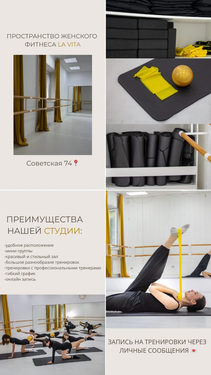 В нашей студии мы создали особенное пространство, где каждая деталь для тебя: Только женская аудитория: комфортная и поддерживающая атмосфера, без лишних взглядов.