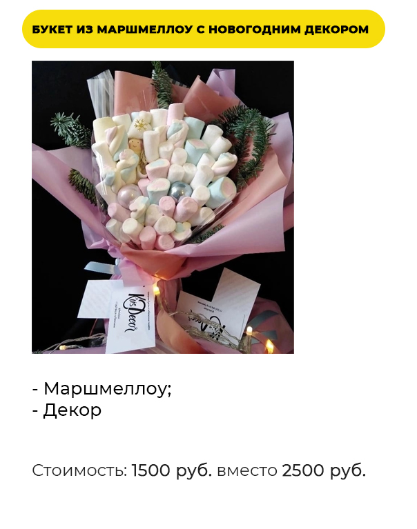 БУКЕТ ИЗ МАРШМЕЛЛОУ С НОВОГОДНИМ ДЕКОРОМ
