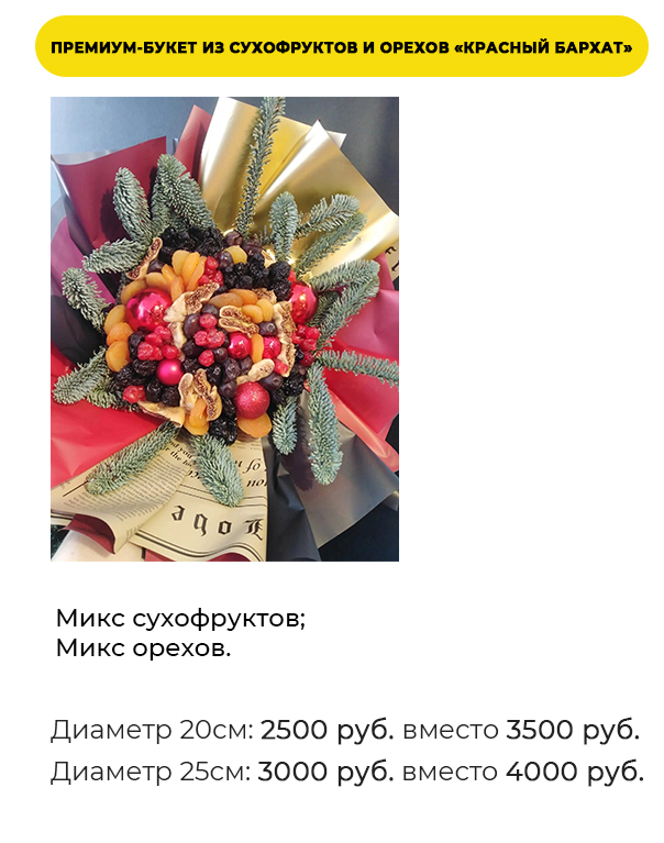 ПРЕМИУМ-БУКЕТ ИЗ СУХОФРУКТОВ И ОРЕХОВ «КРАСНЫЙ БАРХАТ»