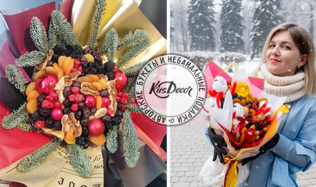 Зимние Вкусные поздравительные букеты к праздникам от «KrisDecor»
